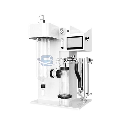 微型噴霧干燥機其主要適用于高校、研究所和食品醫藥化工企業實驗室生產微量顆粒粉末,樣品消耗量少(低至5ml),對所有溶液如乳濁液、懸浮液具有廣譜適用性, 適用于對熱敏感性物的干燥如生物制品、生物農藥、酶制劑等,因所噴出的物料只是在噴成霧狀大小顆粒時才受到高溫,故只是瞬間受熱,能保持這些活性材料在干燥后仍維持其活性成份不受破壞。 占地面積小,方便實驗臺完成操作,采用玻璃組件,噴霧干燥過程清晰可見。
